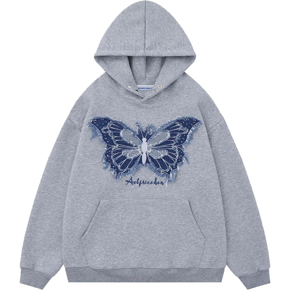 Aelfric Eden Hoodies Denim Butterfly Hoodie Casual Baggy Hooded Pullover Sweatshirts Streetwear Unisex(Grey)