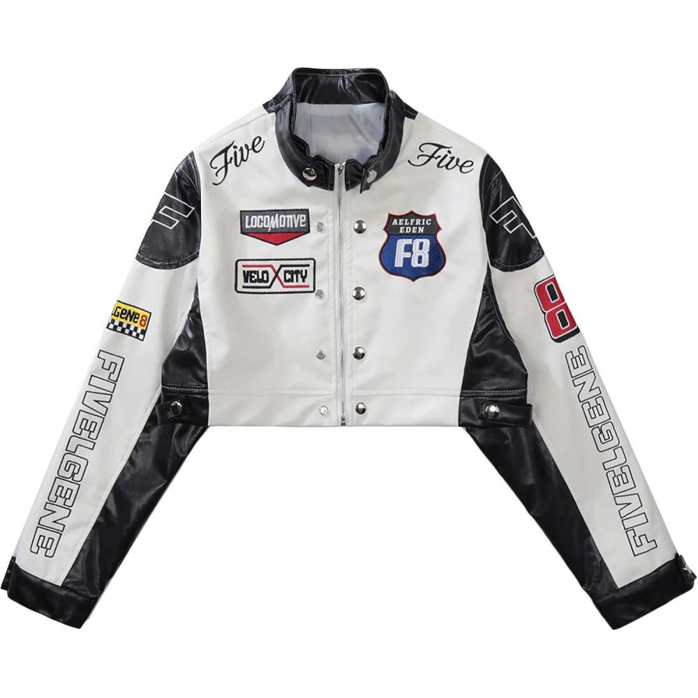 Aelfric Eden Cropped Leather Jacket Women PU Crop Moto Biker Racing Trendy Fashion Casual Coats(Black)