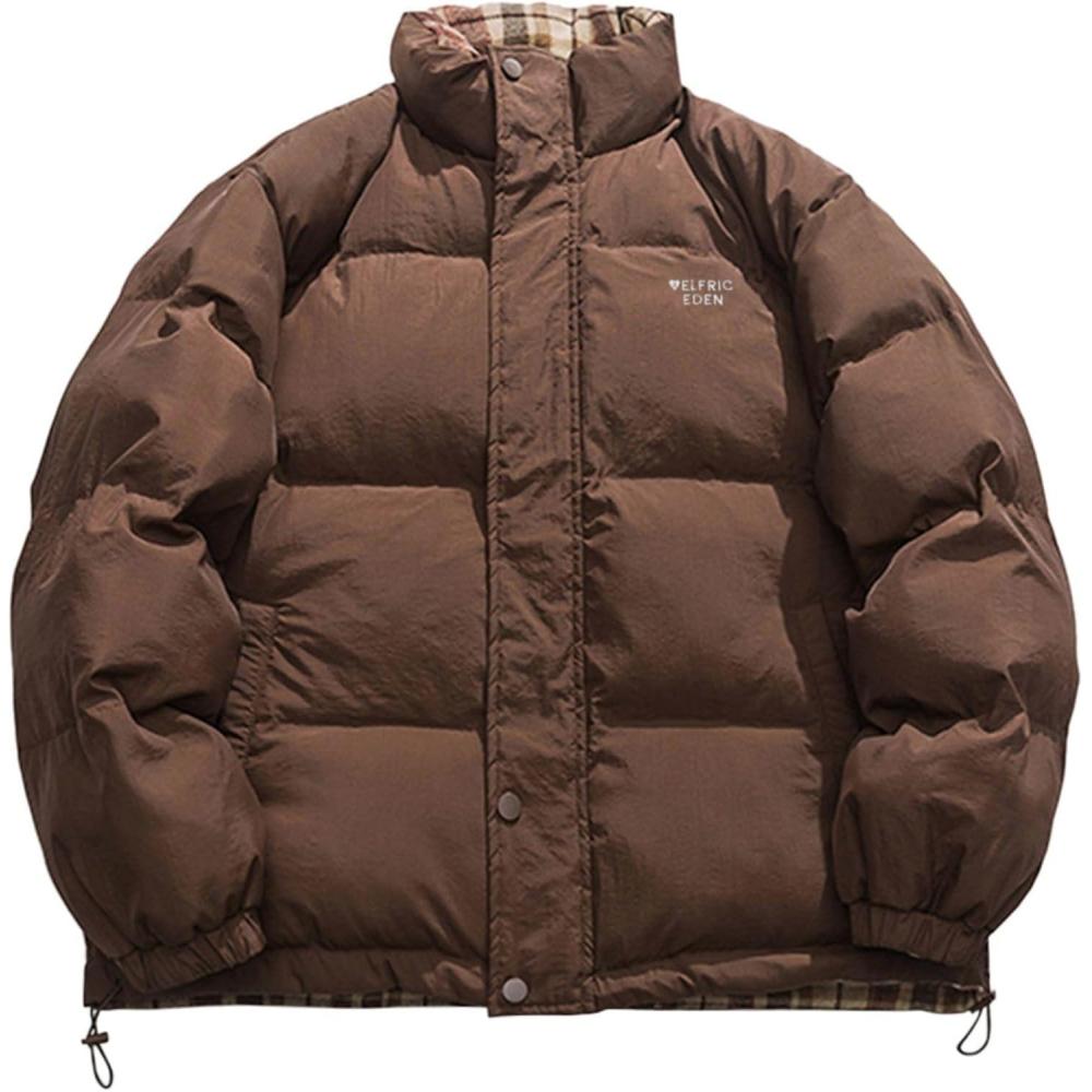 Aelfric Eden Coats Plaid Reversible Coat Trendy Solid Casual Puffer Down Jacket Quilted Bubble Jackets Y2k Outfits(Coffee)