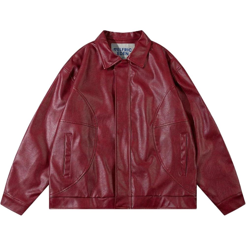 Aelfric Eden Faux Leather Jacket Oversized Vintage Motorcycle Jackets Moto Coats Unisex Streetwear Jacket Burgundy(Burgundy)
