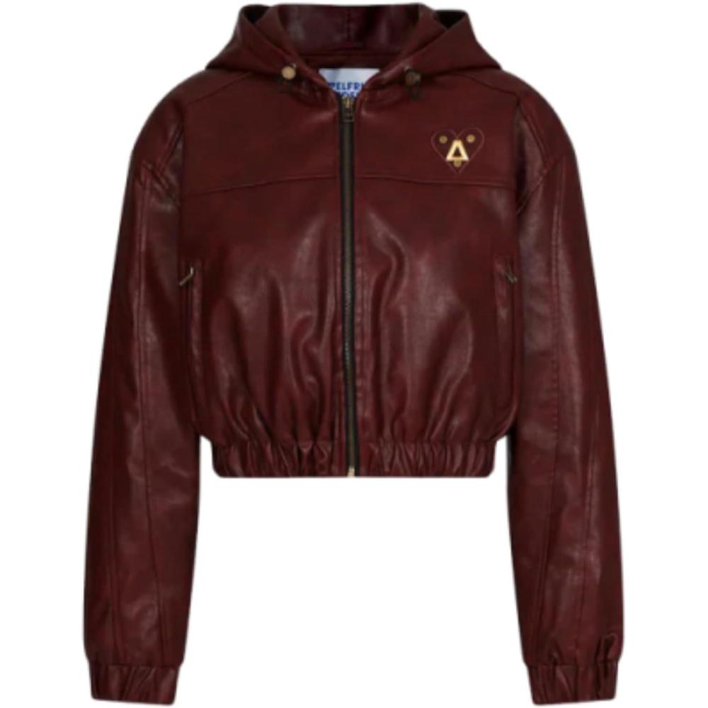 Aelfric Eden Jackets Cropped Faux Leather Hooded Jacket Vintage Fashion Casual Motorcycle Coats Y2k Dressy Outfits(Red)