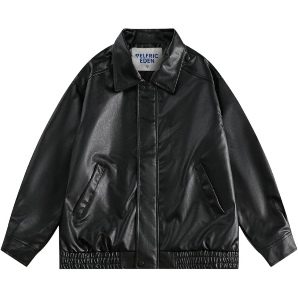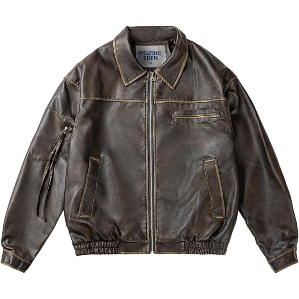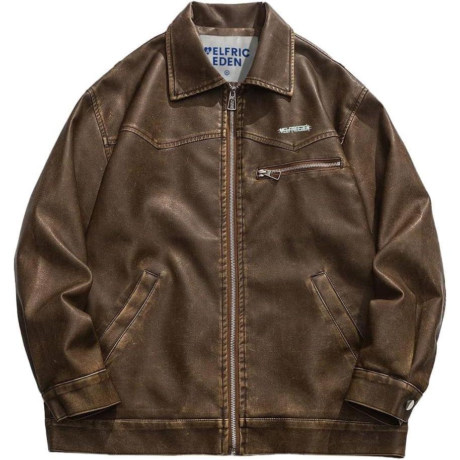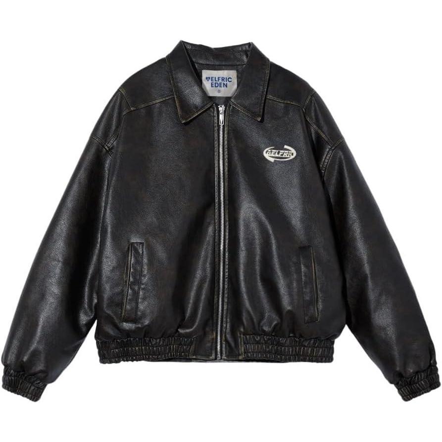 Aelfric Eden Leather Jacket Faux Vintage Oversized Motorcycle Jackets Zip Up Moto Jacket Fashion Trendy Outfits Unisex