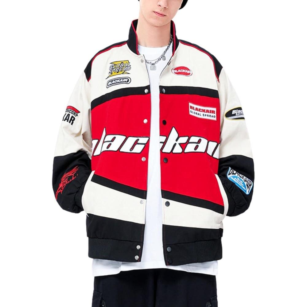 Aelfric Eden Men’s Motorcycle Jacket Blackair Moto Varsity Baseball Jacket Women Vintage Coats(#Va-red)