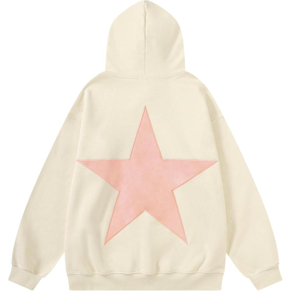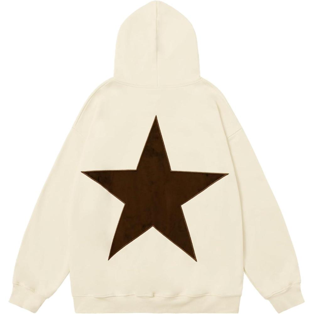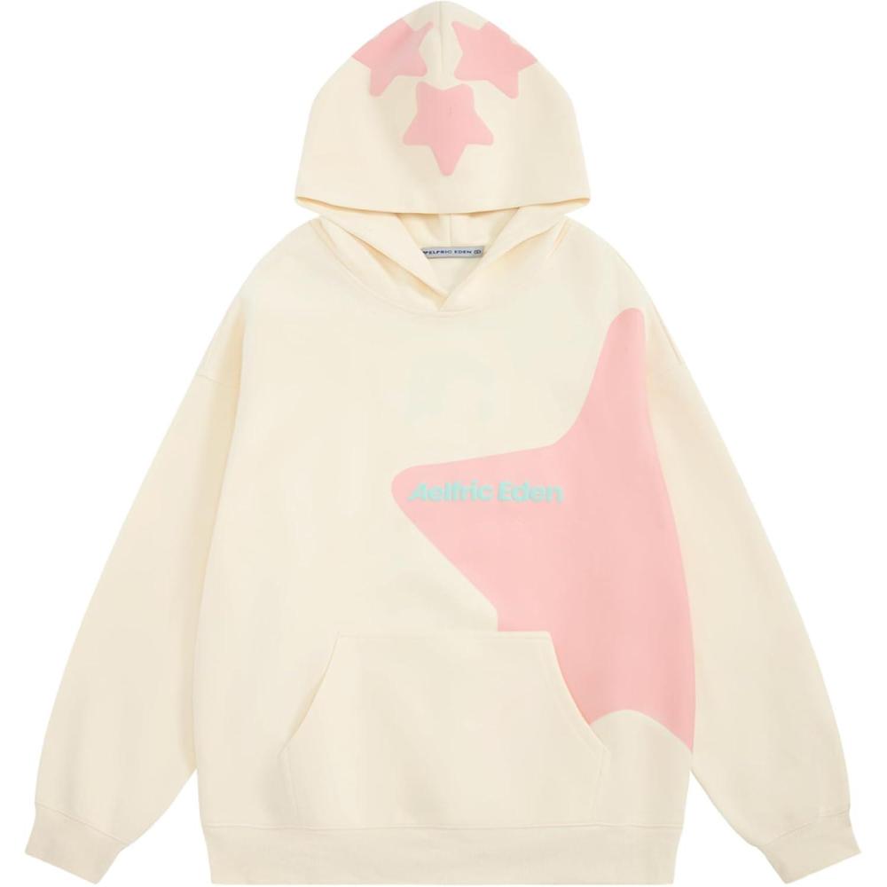 Aelfric Eden Star Hoodies Y2k Oversized Graphic Hoodies Aesthetic 90s Crewneck Sweatshirt Long Sleeve Pullover Tops(Beige)