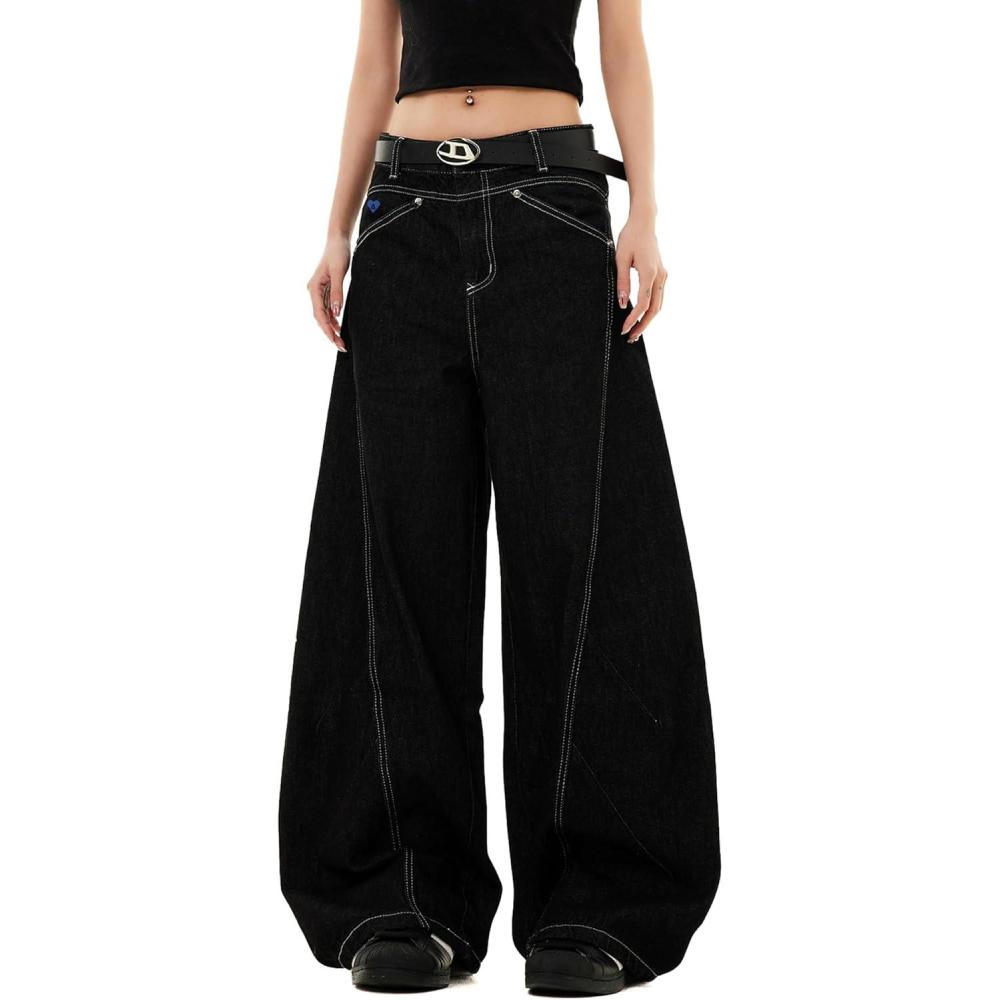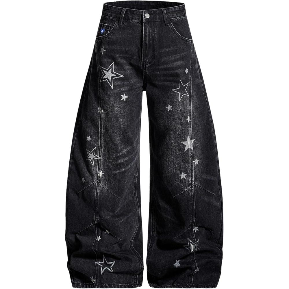 Aelfric Eden Baggy Barrel Jeans Washed Star Wide Leg Jeans Y2k Hip Hop Streetwear Denim Pants Trousers(Black)