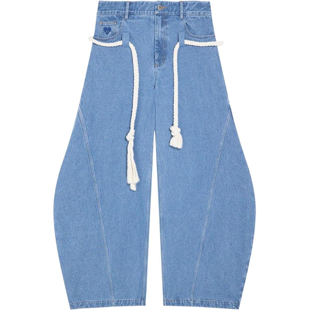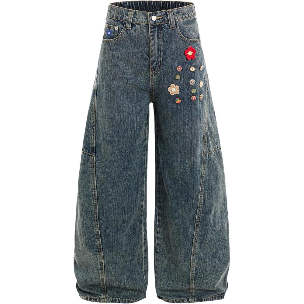 Aelfric Eden Baggy Barrel Jeans Womens Floral Button Wide Leg Jeans Vintage Streetwear Y2k Denim Pants(Blue)