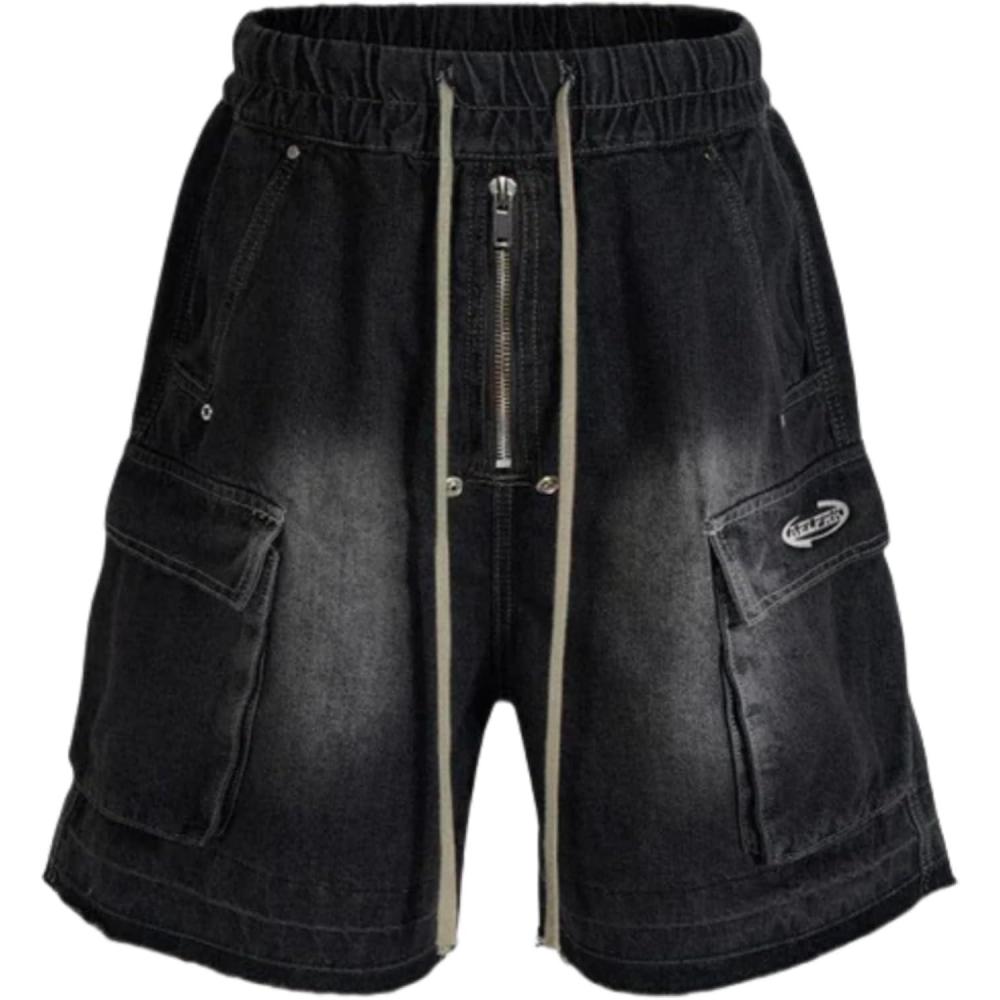 Aelfric Eden Baggy Jean Shorts Mens Drawstring Washed Jorts Loose Fit Denim Shorts Streetwear Y2K Cargo Jorts(Black)