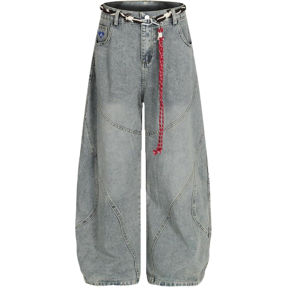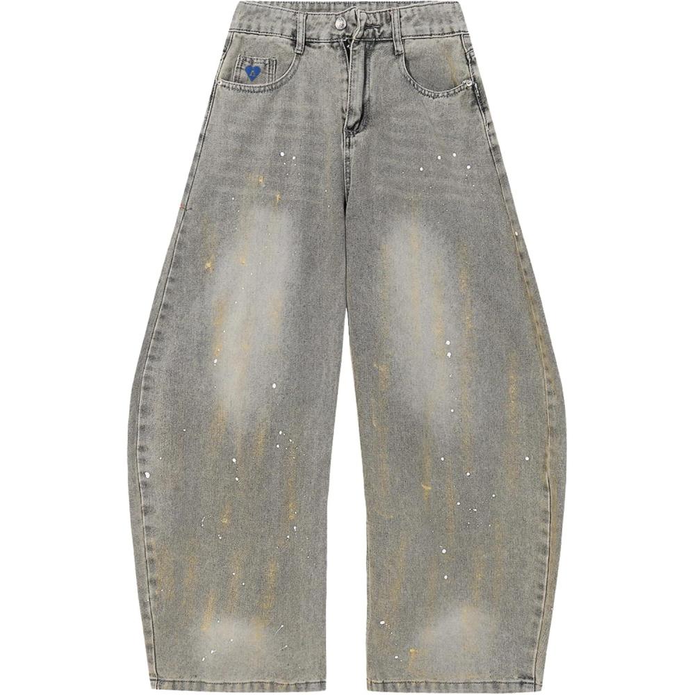 Aelfric Eden Baggy Barrel Jeans Ink Splash Wide Leg Jeans Womens Mens Retro Washed Unisex Streetwear Y2K Casual Denim Pants(Light Grey)