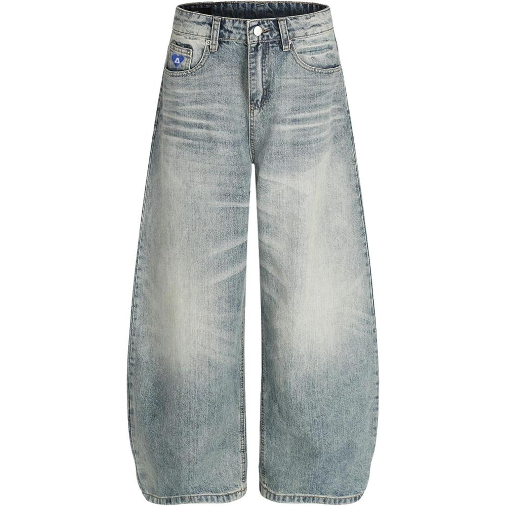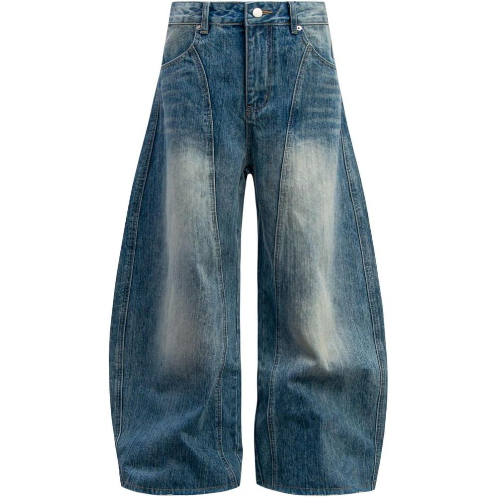 Aelfric Eden Baggy Barrel Jeans Wide Leg Denim Retro Washed Straight Leg Jeans Unisex Casual Y2k Streetwear Pants Trouser(Blue)