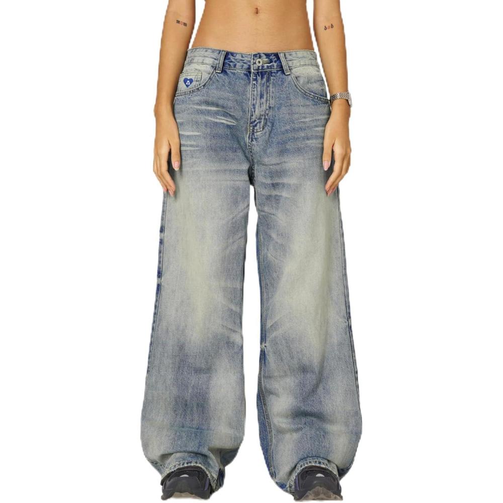 Aelfric Eden Baggy Jeans Womens Washed Wide Leg Jeans High Waist Casual Y2k Streetwear Vintage Straight Denim Pants(Blue)