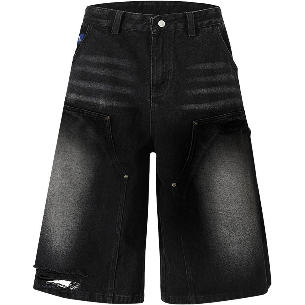 Aelfric Eden Baggy Jorts Basic Acid Wash Loose Fit Long Denim Shorts Y2K Streetwear Summer Short Jeans(Black)