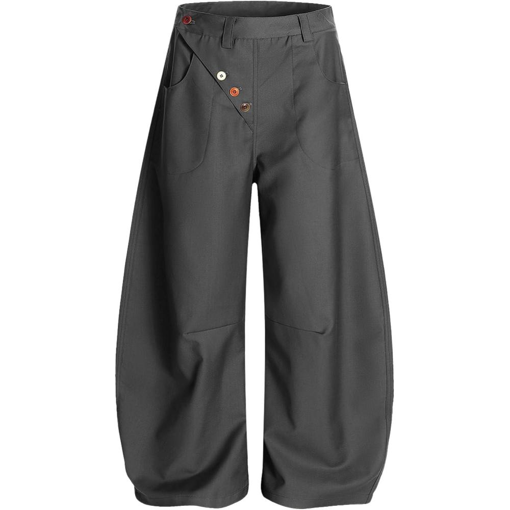 Aelfric Eden Baggy Wide Leg Barrel Pants Colorful Button for Women Men Casual Streetwear Y2K Loose Lantern Trousers Pants(Grey)