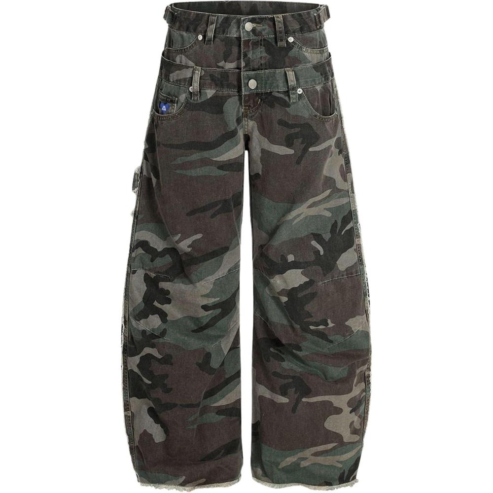 Aelfric Eden Camouflage Double Waist Cargo Baggy Barrel Wide Leg Pants Casual Streetwear Unisex Retro Trouser with Pockets