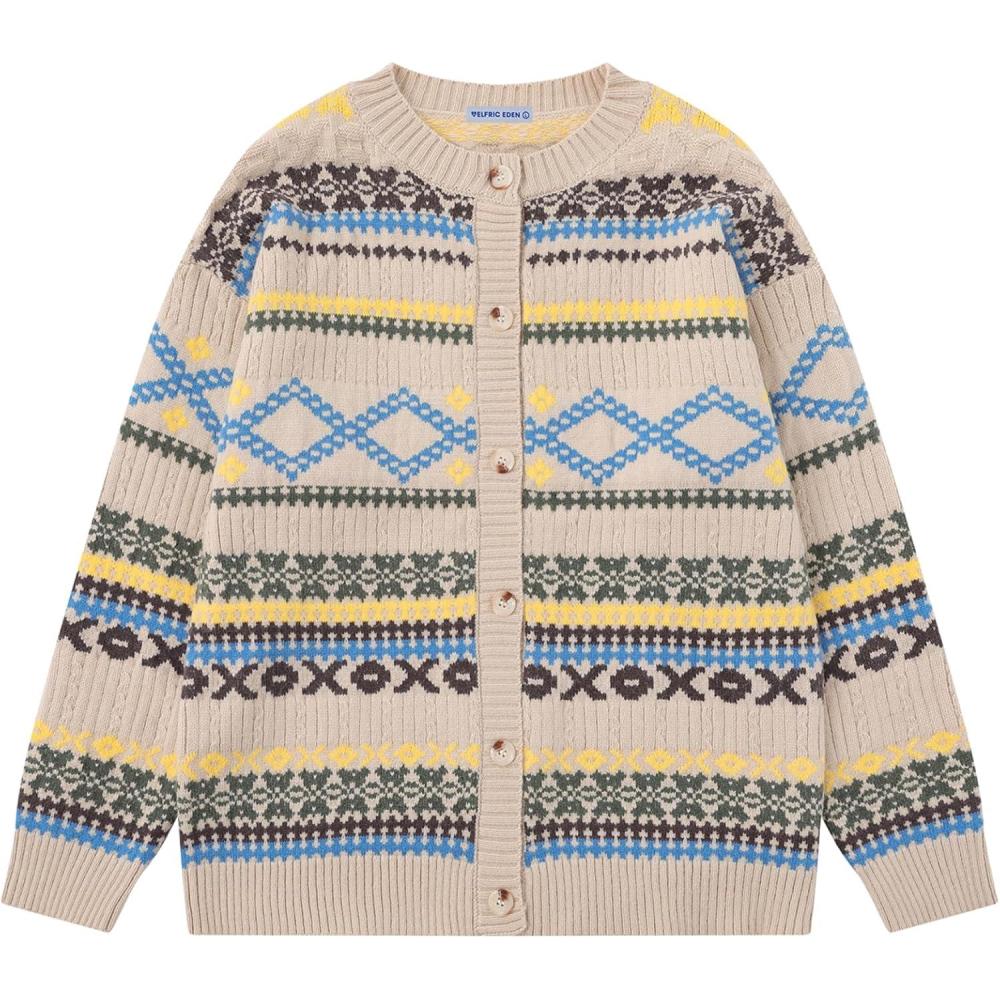Aelfric Eden Cardigan Sweater Vintage Open Front Knit Cardigans Graphic Color Blocking Sweaters Streetwear 2025 Outfits(Apricot)