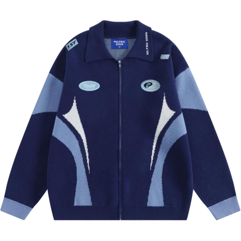 Aelfric Eden Cardigan Sweater for Women Men Racing Patchwork Zip Up Cardigans Graphic Casual Y2k 2025 Outfits(Blue)