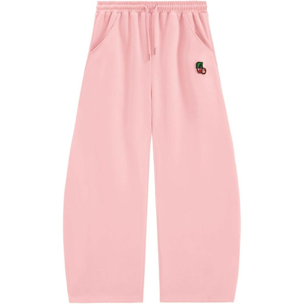 Aelfric Eden Cherry Embroidery Baggy Barrel Sweatpants Wide Leg Pants Open Bottom Casual Y2K Athletic Lounge Sports Trousers(Pink)