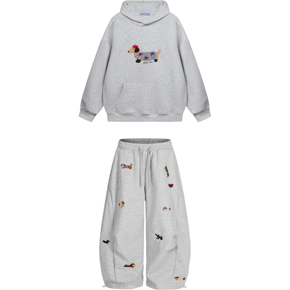 Aelfric Eden Embroidery Puppy Hoodie and Sweatpants Sweatsuits 2 Piece Set Track Suits Sweat Matching Lounge Pants Grey XS