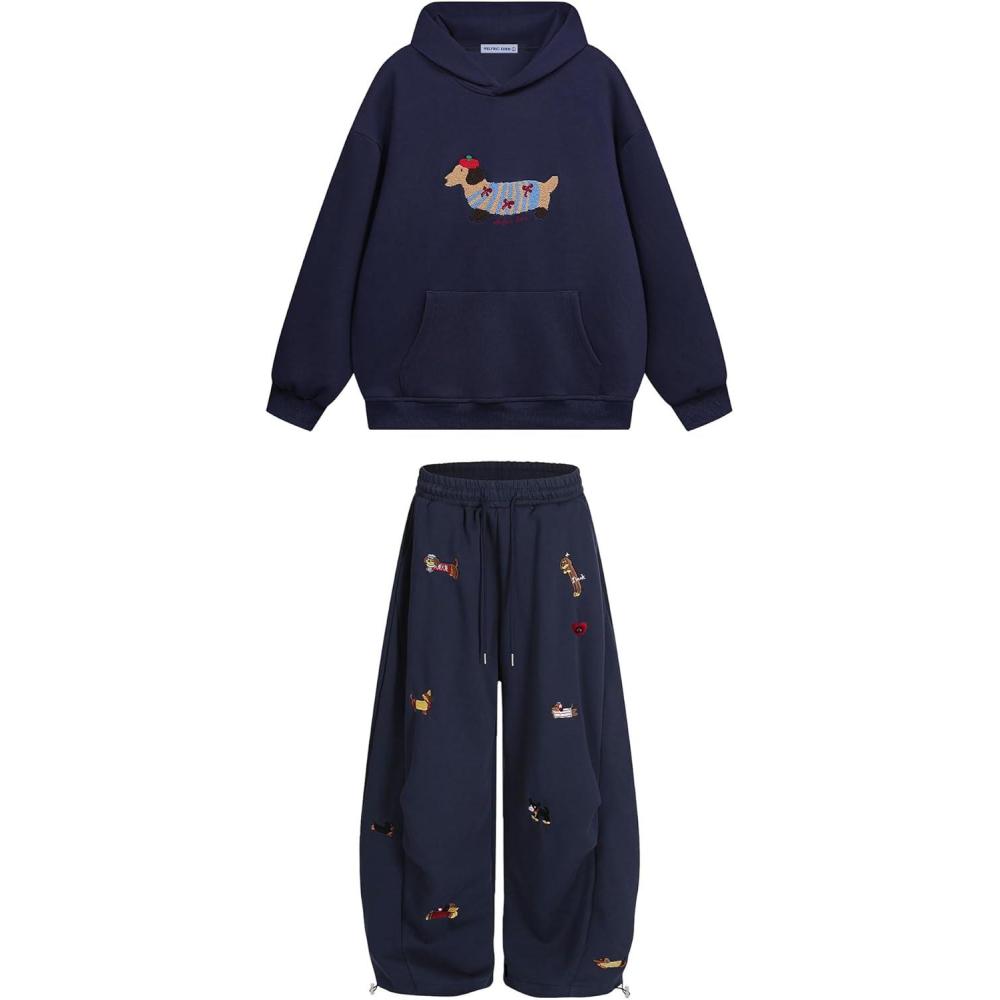 Aelfric Eden Embroidery Puppy Hoodie and Sweatpants Sweatsuits 2 Piece Set Track Suits Sweat Matching Lounge Pants Navy Blue XS