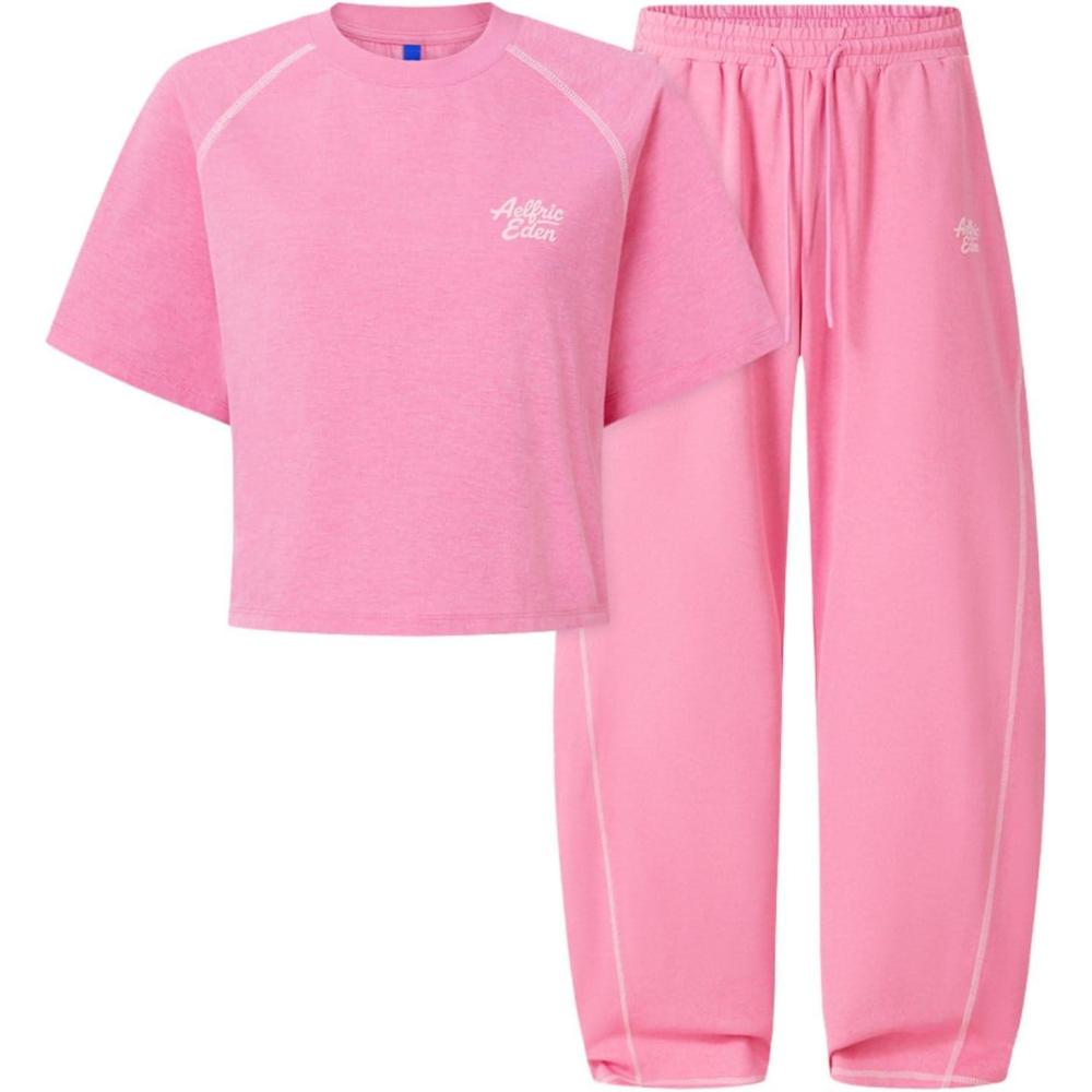 Aelfric Eden Cloud Cropped Sweat Sets Summer 2 Piece Outfits Crop Top High Waisted Baggy Barrel Sweatpants Sweatsuit(Pink)