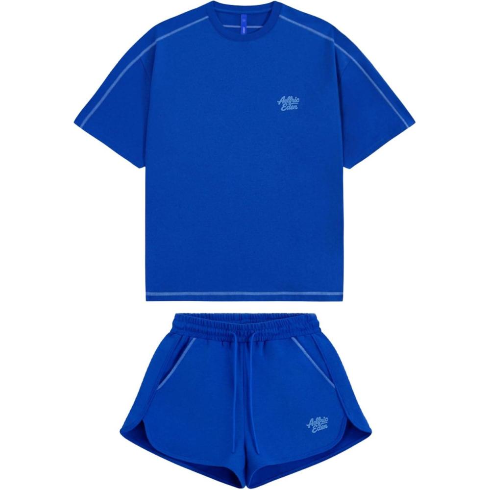 Aelfric Eden Cloud Oversized Sweat Set for women 2 Piece Shorts Sets 2026 Summer Casual Loose Short Sleeve Matching(Blue)